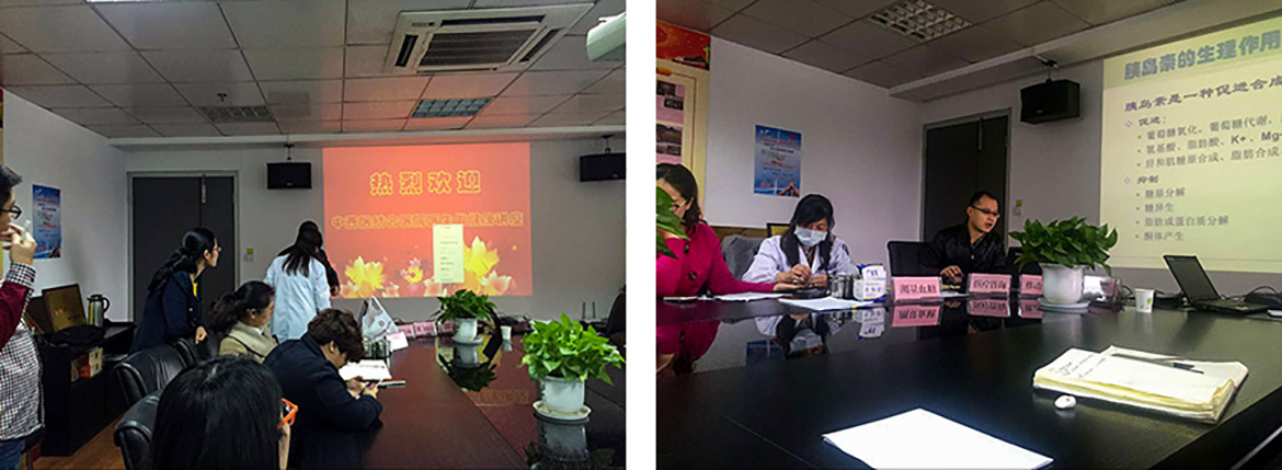 醫生分析公司存在比較多的健康問題是血脂高、血糖高、脂肪肝、高尿酸血癥以及甲狀腺結節等。對于脂肪肝,醫生重點分析了其形成原理,讓我們更加懂得了合理飲食的重要性。而對于血糖高的問題,醫生帶了血糖檢測儀,給參會的每個人免費做了血糖檢測,并講解了血糖和糖尿病的相關醫學知識,尤其是糖尿病現在已是國人的第二大健康殺手,必須引起重視,所以醫生重點講了控制血糖,糖尿病的治療和預防措施。甲狀腺結節也是公司很多員工都存在的健康問題,醫生也對甲狀腺結節的知識做了介紹,重點是定期檢查,注意飲食。期間也有員工就自己的健康問題做了咨詢,也有員工帶了自己的體檢報告給醫生,醫生都做了認真的講解。