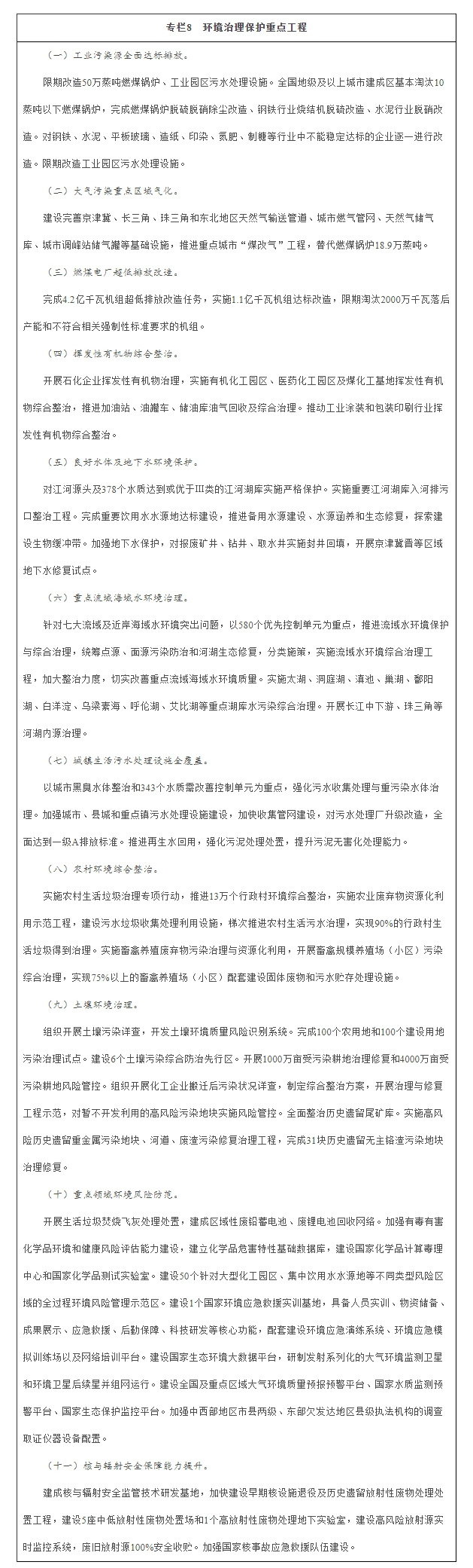 “十三五”期間,國家組織實施工業(yè)污染源全面達(dá)標(biāo)排放等25項重點工程,建立重大項目庫,強化項目績效管理。項目投入以企業(yè)和地方政府為主,中央財政予以適當(dāng)支持。